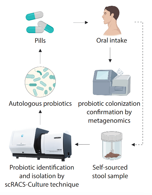 This enhances probiotic colonization and integration. The autologous probiotics is designed tailored to individual health needs and benefits conditions